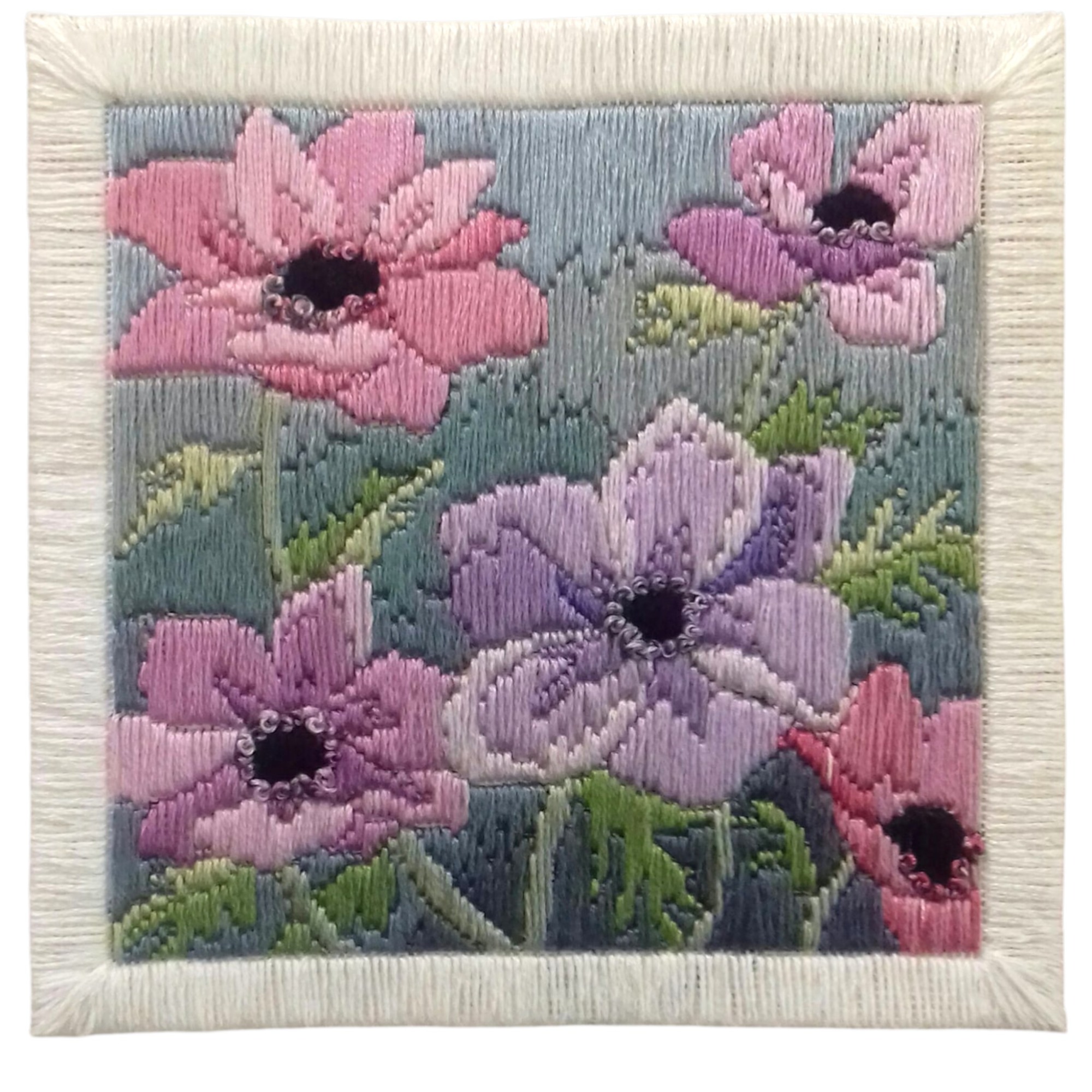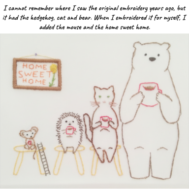 I have embroidered some large pieces, but I much prefer minis, partly because I love miniature crafts and partly because I get bored quickly. Currently, I have at least a hundred half-finished large pieces, and I've stopped fooling myself that I have what it takes to spend months on a single embroidery.